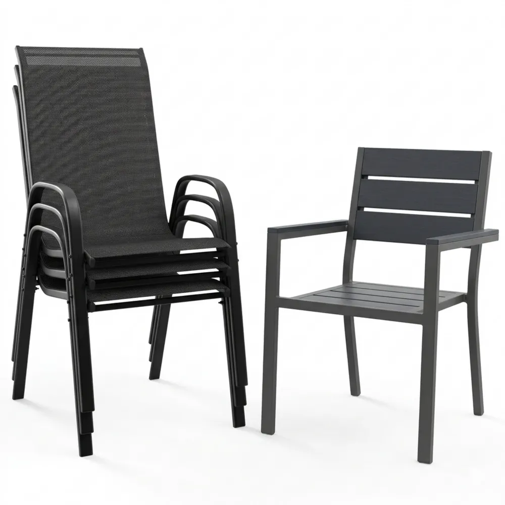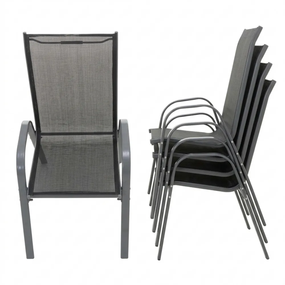 Hochwertige Stapelstühle aus Textilene und Stahl in Anthrazit und Schwarz