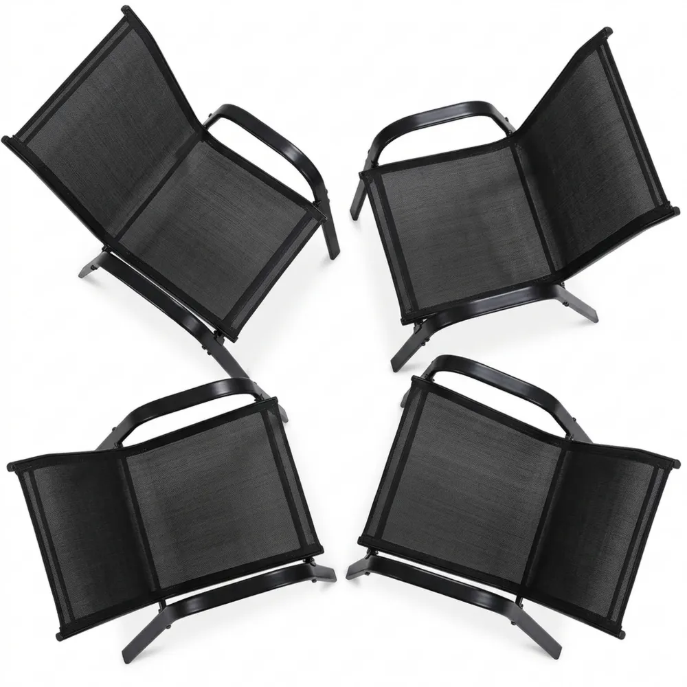 Der Gartenstuhl verfügt über eine hohe Rückenlehne und einen breiten Sitz, die den Rücken gut unterstützen. Der Stuhl kann gestapelt werden, um Platz zu sparen, wenn er nicht in Gebrauch ist. Sitz und Rückenlehne sind aus Textilen gefertigt, was für Atmungsaktivität und Elastizität sorgt. Der Metallrahmen macht den Stuhl robust und widerstandsfähig. Eine Anti-Rutsch-Vorrichtung sorgt für Stabilität und Schutz des Bodens. Der Stuhl kann sowohl im Innen- als auch im Außenbereich verwendet werden.