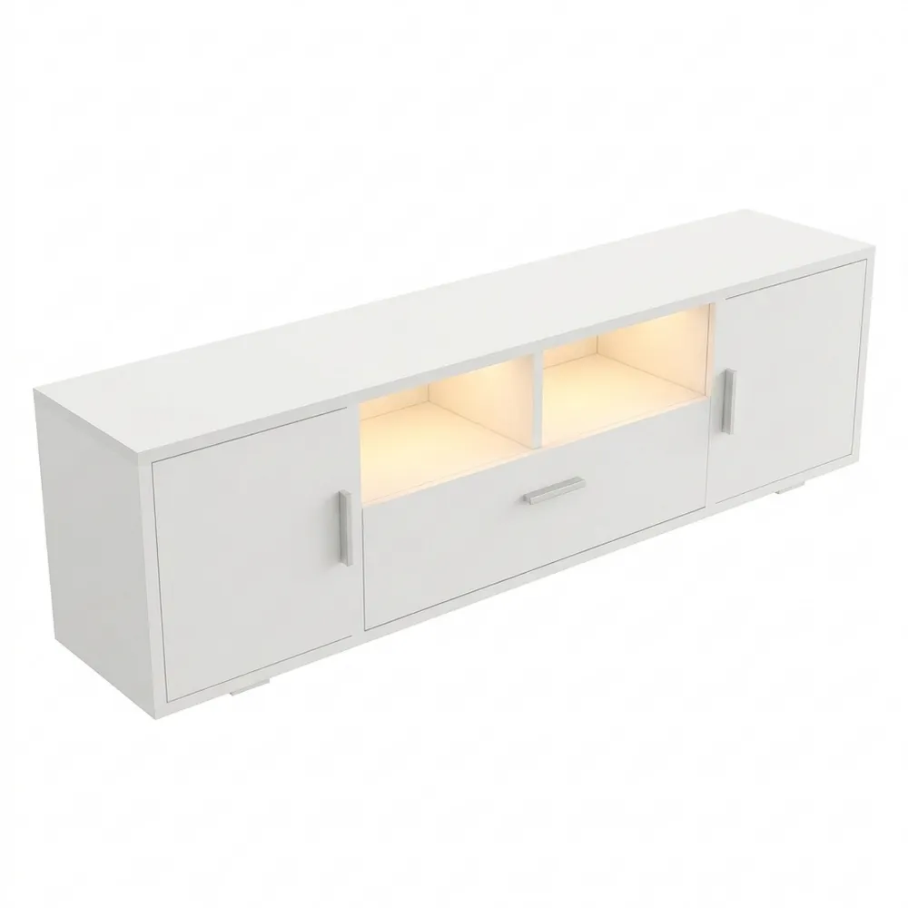 Ein Design, das sich in jede Wohneinrichtung einfügt. Ideal für verschiedene Raumgestaltungen. Die LED-Beleuchtung bietet anpassbare Helligkeit und Farben, passend zur Musik. Der Stauraum umfasst versteckte Schränke und Regale für Ausrüstung und Medien. Kabelführungsöffnungen sorgen für Ordnung. Robust und pflegeleicht dank der verwendeten Materialien.